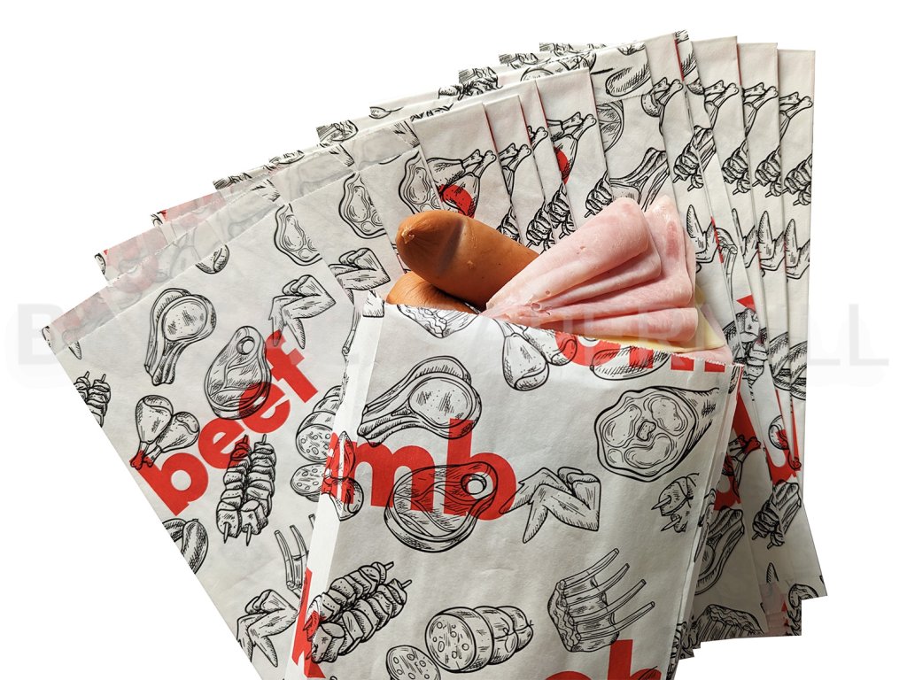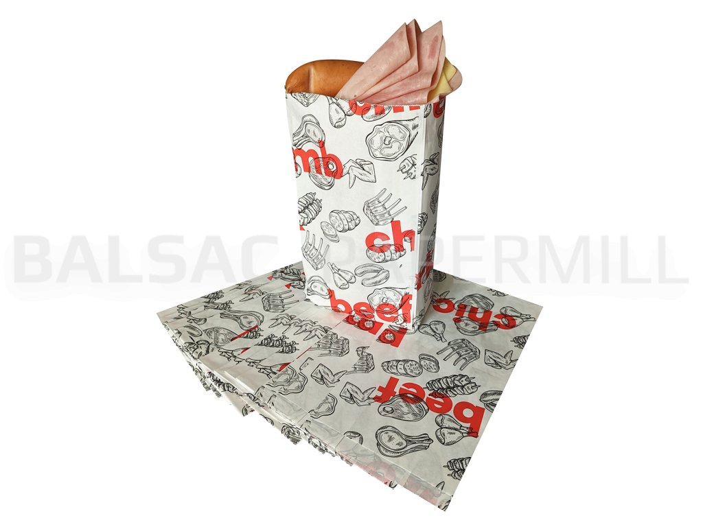 - Hygienický papírový sáček s PE fólií na grilované, pečené, mastné a smažené pokrmy